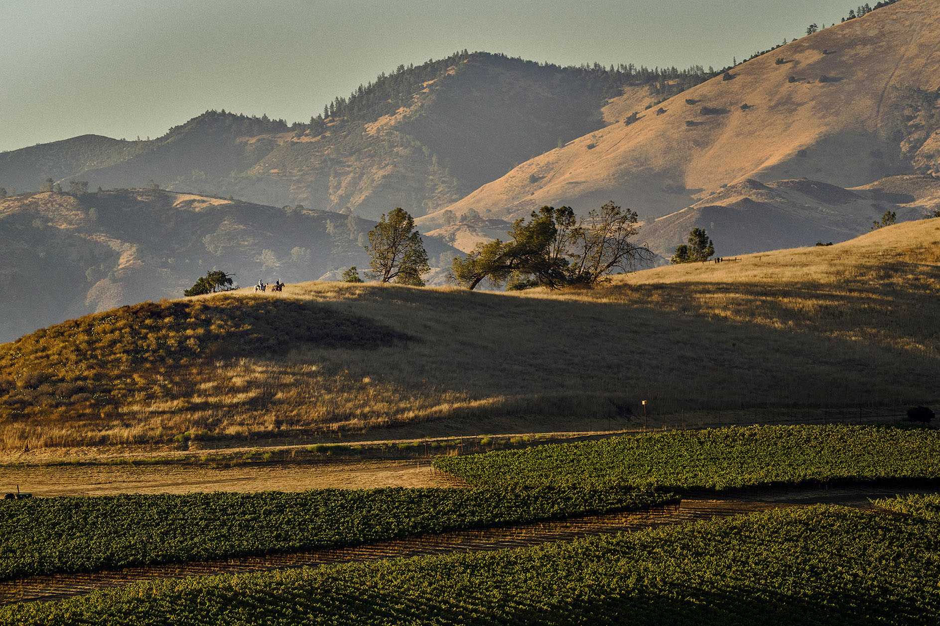 The east slope of the Kiani Preserve vineyard soaks up the last light of the day.